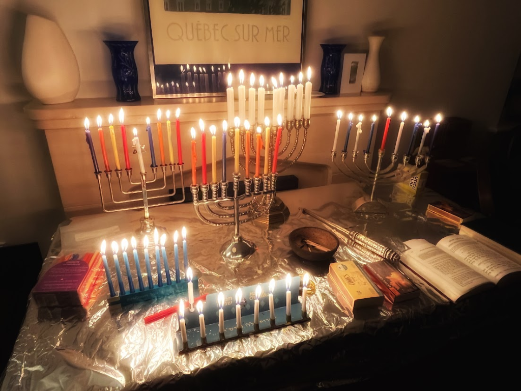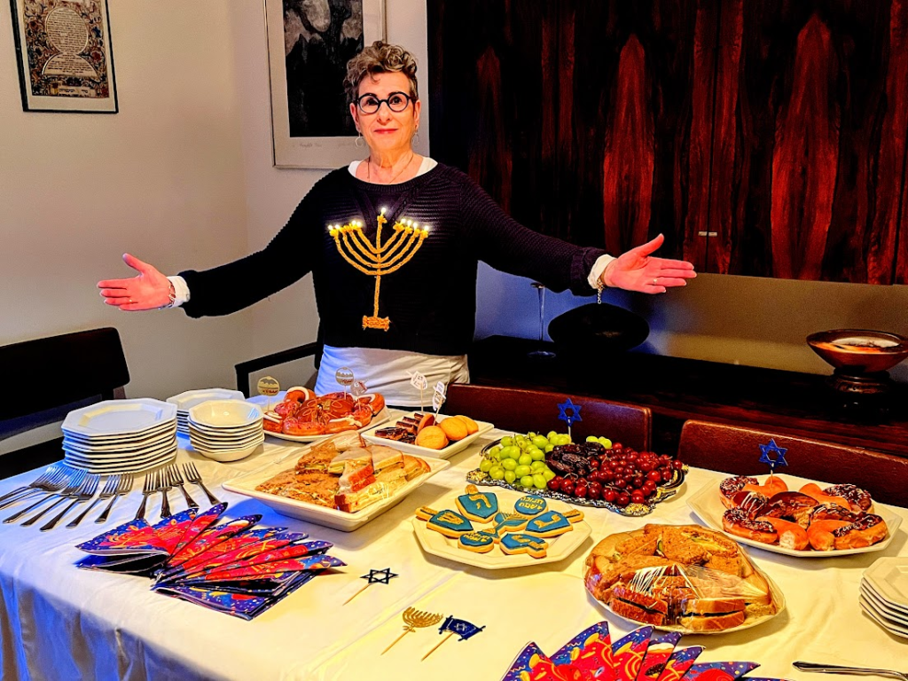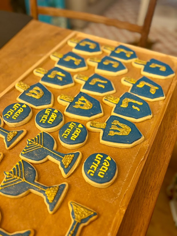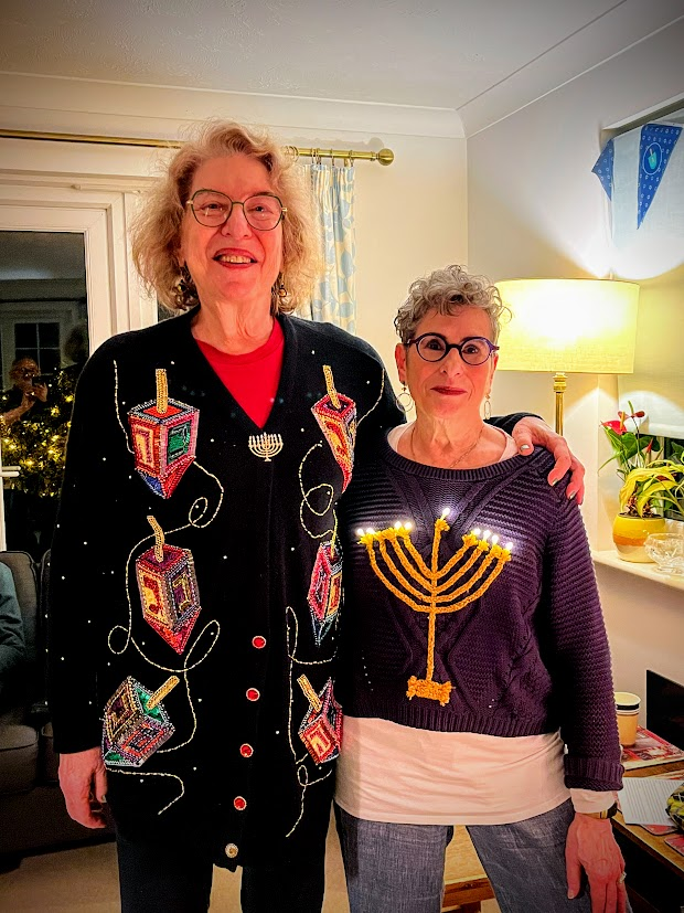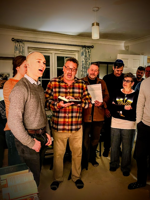 30 Kehillat Kernow members and friends – Jewish and non-Jewish – gathered at Jo and Paul’s house in Truro to celebrate the last night of Chanukah. There were enough menorahs for everyone to light a candle, and there were dougnuts, dreidl shortbread biscuits, cakes, sandwiches, savouries and veggie mince pies. Thank you to all those who made and brought food and drink and a special ‘shout out’ to Sarah for the dreidl shortbread and Jacquie and Yaron for the mulled apple from their farm. Adam and Isaac Feldman sang a beautiful verson of Hanerat Ha’lolu, and Mah Otzur was sung by all with great passion. It was a really lovely event especially in these difficult times for Jewish communities everywhere.