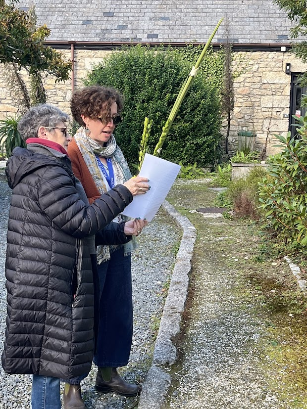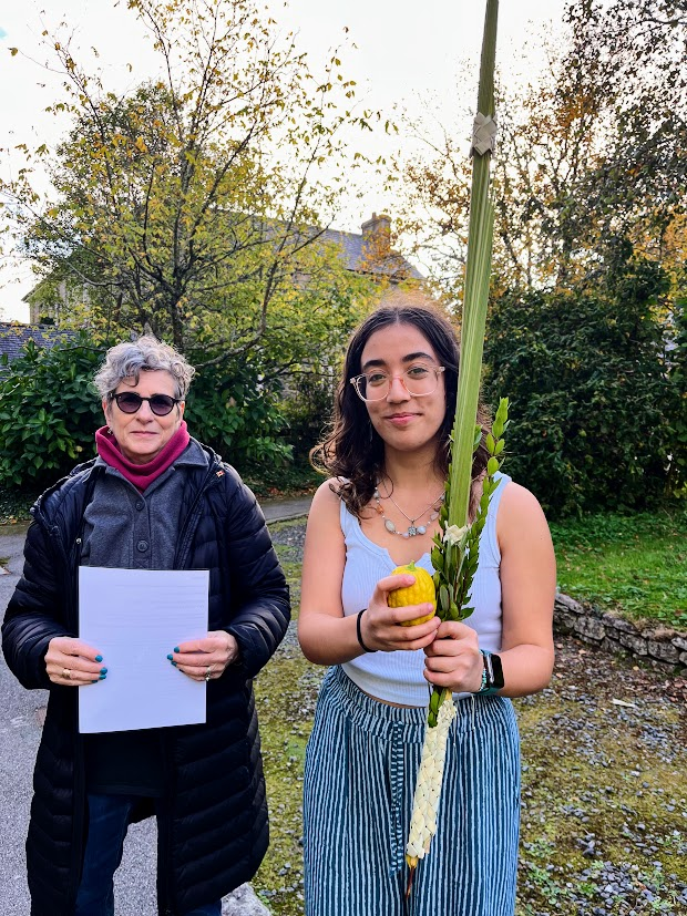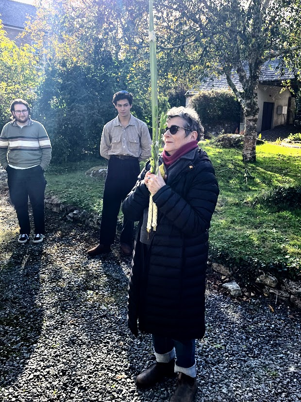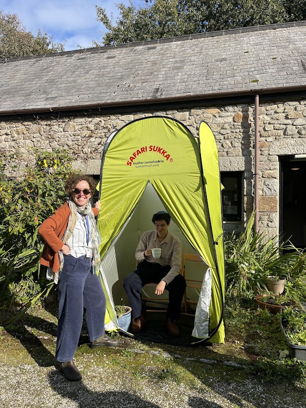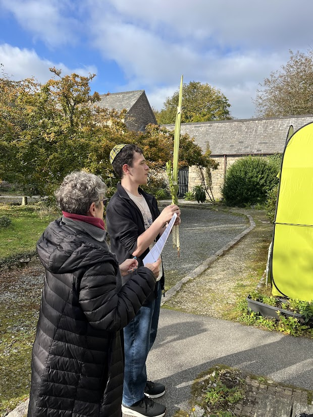 For the second year members of Kehillat Kernow joined students at the Penryn Campus to celebrate Sukkot. The student chaplain Gemma Tracey, who is a member of Kehillat Kernow, erected the pop-up Sukkah in the garden of the Chaplaincy, and Jo Richler and Paul Kleiman brought along the lulav and etrog supplied by Kehillat Kernow via Reform Judaism. They were joined by Adam Feldman who used to teach at the Penryn Campus. Several students, both Jewish and non-Jewish attended and fulfilled the mitzvot of shaking the lulav and sitting in the Succah.