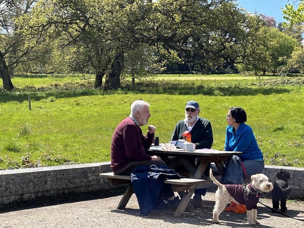 Here are some suggestions for calendar photos. Happy to add more. Picnic at Enys Gardens Communal Meal ‘selfie’ taken by Roger Chatfield;